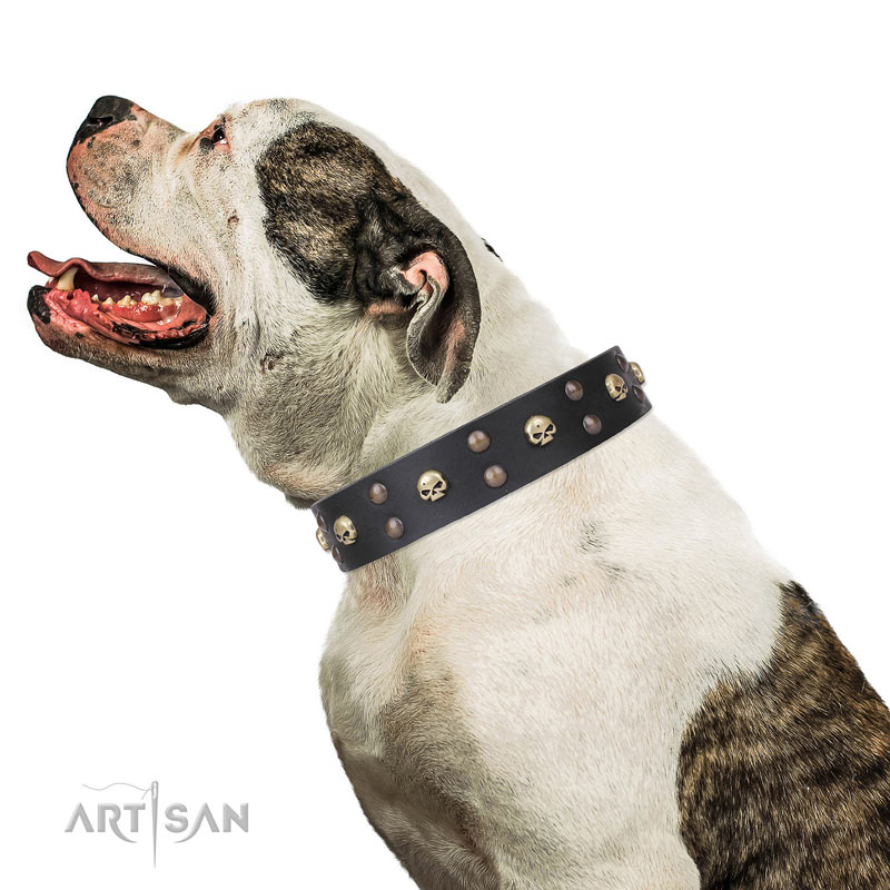 FDT Artisan Distinguished Leather Bulldog Collar with Skulls and Half-Ball Studs